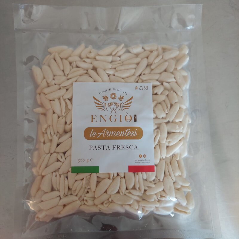 I cavatelli (rašcatjéll∂), Pasta Tipica Lucana, esistono tanti tipi di cavatelli, ma l'unico cavatello originale nella forma e nella lavorazione è il CAVATELLO LE ARMENTESI, infatti si presenta a differenza degli altri molto più grande, con forme irregolari come il classico cavatello a due dita.